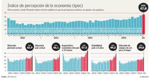 La confianza de los empresarios en la economía marcó su mejor resultado desde enero de 2022, mientras que las expectativas de los consumidores llegaron al nivel más alto desde agosto de 2018. Este repunte fue impulsado por la minería y por la sensación de mayor estabilidad. Tras el triunfo de Kast, los empresarios ven con mejor perspectiva el futuro de la economía. Asimismo las expectativas de los consumidores sobre la situación financiera repuntan con fuerza y alcanzan su mejor nivel en ocho años, y se acercan a “punto de equilibrio”. El índice de percepción de la economía (IPEC) llegó a 47 puntos en enero 2026 y el indicador mensual de confianza empresarial (IMCE) llegó a 52,1 puntos.