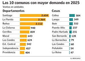 Las comunas de Santiago, La Florida y Ñuñoa encabezaron la venta de departamentos con cerca del 45% de alrededor de 16.000 unidades comercializadas en ese segmento.